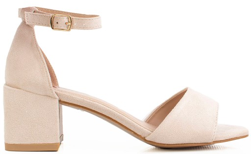 7339 BEŻOWE SANDAŁY NA NISKIM SŁUPKU ZAMSZ 38