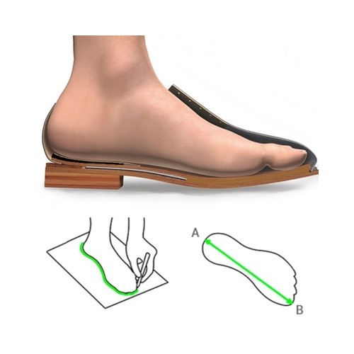 - Zmierz wkładkę w swoich wygodnych butach tego samego rodzaju (jeśli kupujesz czółenka, to mierzymy czółenka o podobnym obcasie itp.).
