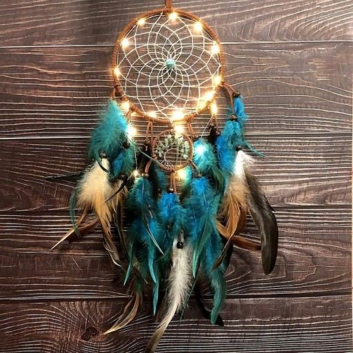 ✨️Materiał: żelazny pierścień, koraliki, nić bawełniana, pióra itp.(Lampki znajdują się w zestawie)