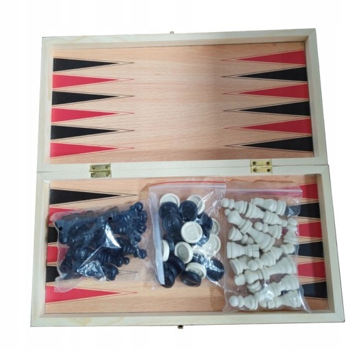GRA W SZACHY WARCABY TRYKTRAK BACKGAMMON DUŻE DREWNIANE 3W1 35X35CM