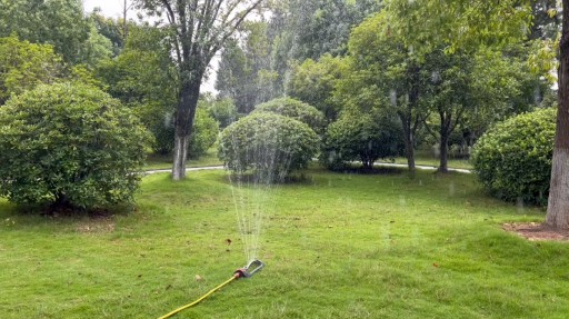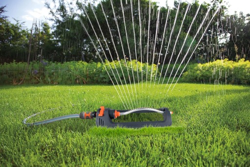Zraszacz nie tworzy kałuż - równomiernie nawadnia całą powierzchnię działki. Urządzenie daje możliwość ustawienia szerokości zraszania.