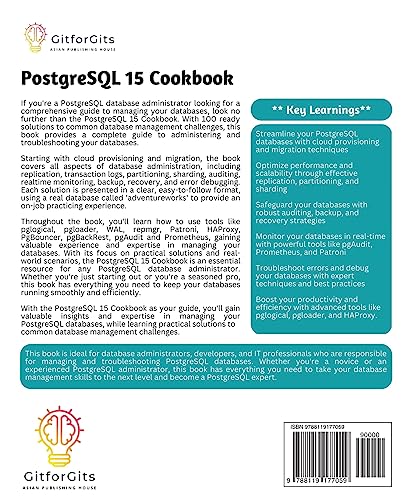 If you're a PostgreSQL database administrator looking for a comprehensive guide to managing your databases, look no further than the PostgreSQL 15 Cookbook. With 100 ready solutions to common database management challenges, this book provides a complete guide to administering and troubleshooting your databases using latest PostgreSQL 15.