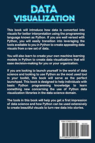 Are you a budding data scientist or aspire to be one someday? Have you ever wondered about all the data that is constantly in motion around the world? Does it surprise you when Netflix gives you suggestions for your next movie and it is very close to your taste in movies? Would you like to know more about data and how it is used regularly to influence every action you take? Do you want to know how businesses with a turnover in millions make critical decisions to make or break their business? Do you wonder how humans can process huge data for their decision-making? All this can be achieved through data in the form of visual representations. If you are curious to know the answers to all these questions, then this is the right book for you. This book will introduce how data is converted into visuals for better interpretation using the programming language known as Python. If you are well versed with Python, you will easily transition into leveraging the tools available to you in Python to create appealing data visuals from a raw set of data. You will also learn to create your own machine learning models in Python to create data visualizations that will ease decision-making for you or your organization. If you are looking to launch yourself in the world of data science and looking to use Python as the most used tool in your toolkit, this book will serve as the perfect launchpad. This book is designed to help individuals with basic Python programming knowledge to learn something new concerning the use of Python data visualization libraries in the data science domain. The tools in this book will help you get a first impression of data science and how Python can be used extensively to create beautiful visuals to turn raw data into stories. The book will take you through: The need for data visualization today The concepts and techniques of data visualization The various tools available to achieve data visualization Data visualization libraries in Python The Pareto Chart Regression and Classification using Python This book has been designed for you to understand data visualization using Python. There are step by step guides and images with code snippets throughout the book to help you get your hands dirty by creating your own data visuals. So, here’s hoping that this book helps you find your appetite to become a data scientist with a mystery in presenting data through effective visualizations someday. Click the Buy Now button to get started!