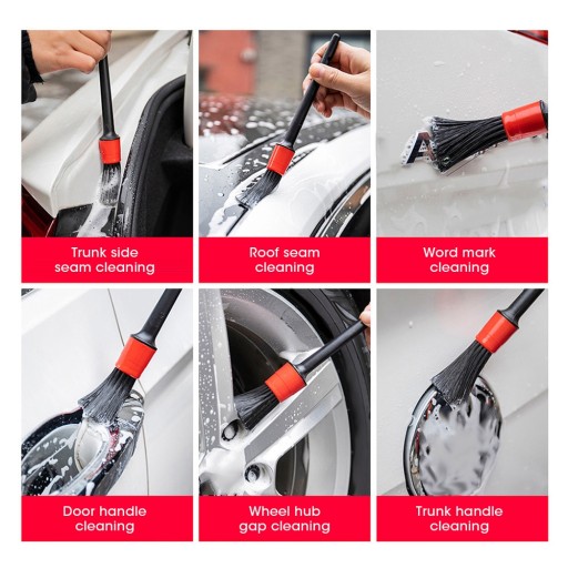 1,5 różnych rozmiarów szczotek, możesz wybrać dowolny, który odpowiada Twoim potrzebom, długość wystarczająca do łatwego odkrywania i sięgania do nakrętek mocujących, w wąskiej lub ciasnej przestrzeni. 2. Pędzel wykonany z mieszanych włókien chemicznych ze świńskiej sierści jest bardzo elastyczny i niełatwo stracić włosy. 3. Uchwyt wykonany jest z nowego plastiku PP, który jest wygodny i trwały. 4. Doskonały do stosowania na siedzeniach lub wykończeniach ze skóry nappa, takich jak emblematy zewnętrzne. 5. Trzymaj pędzle pod ręką i łatwo dostępne dzięki otworom do zawieszania uchwytów. 6. Ta wielofunkcyjna szczotka doskonale nadaje się do użytku na mokro i na sucho. Ma na celu usunięcie kurzu, okruszków chleba i innych drobnych przedmiotów z kół, otworów wentylacyjnych, tapicerki, szczelin siedzeń i emblematów, aby Twój ukochany samochód był schludny i czysty na lewą stronę.