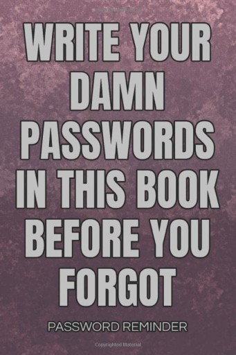 Write Your Damn Passwords In This Book Password Reminder: Password Organizer & Log Book, Remember Passwords. Usernames & Logins For Websites, Password ... Passwords With This Password Organizer