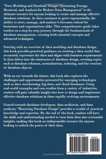 "Data Modeling and Database Design: Optimizing Storage, Retrieval, and Analysis for Modern Data Management" is the ultimate resource for anyone looking to create and manage effective database solutions. As data continues to grow exponentially, the ability to store, manage, and analyze it becomes critical for businesses and organizations alike. This comprehensive guide takes readers on a step-by-step journey through the fundamentals of database management, covering both essential concepts and advanced techniques.