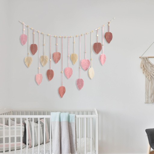 Makrama ścienna wisząca tkana gobelin czeska dekoracja ścienna do pokoju dziecięcego różowa