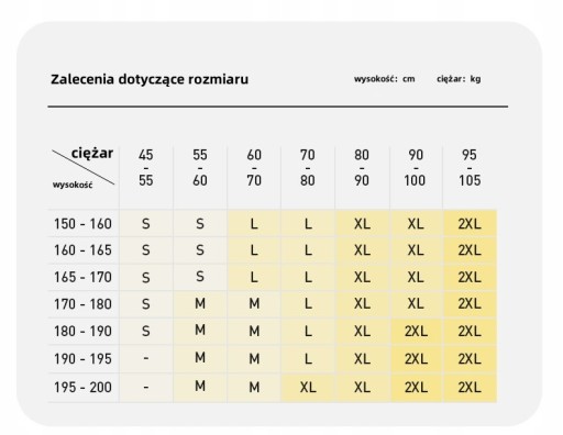 Jeśli nie masz pewności co do konkretnego rozmiaru swojego ciała, użyj swojej wagi jako punktu odniesienia.