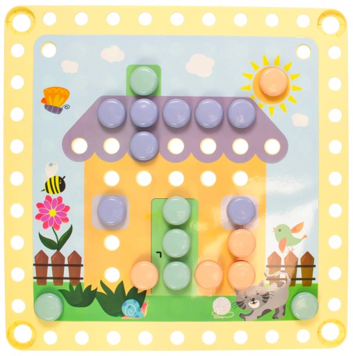 DOMEK jako jedyny na rynku, posiada wbudowane panele z zabawami, na każdej ze ścianek domku dziecko znajdzie inną zabawę edukacyjną lub zręcznościową, rozwijają umiejętności motoryczne oraz koordynacje oko-ręka.