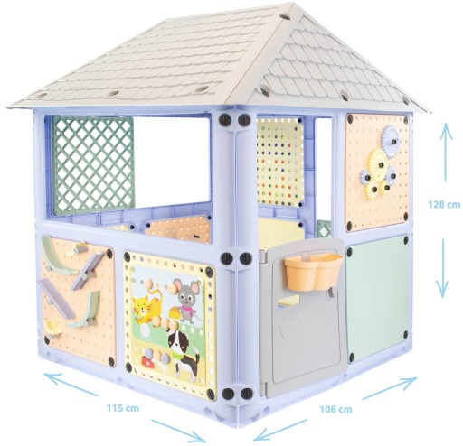 Domek doskonale sprawdzi się w samodzielnych zabawach malucha jak i z przyjaciółmi czy rodzeństwem. Zabawy w domku rozwiną sprawność fizyczną, pobudzą kreatywność i wyobraźnię i zapewnią fantastyczne zajęcie na wiele godzin, a umieszczone na ściankach panele edukacyjne, urozmaicą dziecku czas spędzony w domku i jednocześnie rozwiną zdolności manualne i poznawcze.