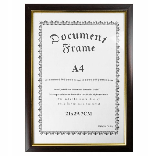 Nowoczesna w swojej formie doskonale nadaje się jako oprawa dyplomów, certyfikatów i nagród wykonanych w popularnym formacie A4 (21×30). Nasza ramka będzie świetnym sposobem na zabezpieczenie ważnych dokumentów, jak i ich wyeksponowanie.