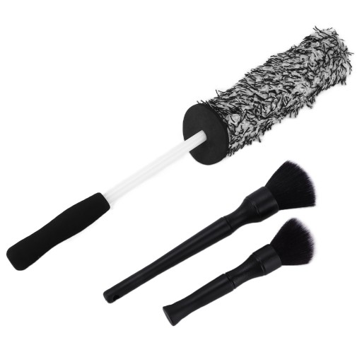 1.Zestaw zawiera szczotkę do kół i szczotkę do detali, które zapewniają lepsze czyszczenie samochodu. Nadaje się do czyszczenia kół i felg, plakietek, desek rozdzielczych i elementów dekoracyjnych. Spraw, aby czyszczenie samochodu było łatwiejsze i szybsze. 2. Szczotka do kół wykonana jest z miękkiego i trwałego materiału z mikrofibry, nie szkodzi ani nie rysuje koła, a także nadaje się do wytwarzania większej liczby pęcherzyków powietrza. Wewnętrzna pianka pochłaniająca wodę zapewnia gęstą zdolność wchłaniania wody. 3. Szczotka do kół posiada plastikowy uchwyt i osłonę kostek, które chronią dłonie i zapobiegają urazom podczas czyszczenia głębokich felg. 4. Szczotka do detali wykonana jest z super miękkiego nylonowego włosia, przeznaczona do usuwania kurzu, brudu i zanieczyszczeń z eleganckich powierzchni oraz do czyszczenia wokół plakietek, desek rozdzielczych i części dekoracyjnych. 5. Pędzel do szczegółów wykorzystuje polipropylenowe teksturowane uchwyty, które nie niszczą delikatnej powierzchni i są ogólnie bardzo dobrze wyważone.