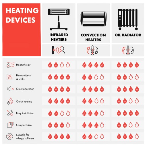 - Kategoryzacja produktu według obrazka z porównaniem wydajności urządzeń: Infrared heaters