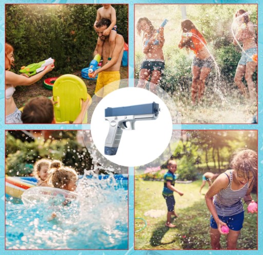 - Elektryczny pistolet na wodę, który działa przy pomocy jednego przycisku, co zapewni wygodę podczas użytkowania.