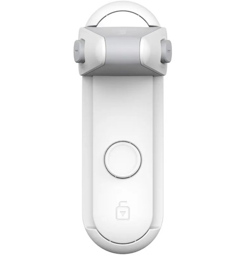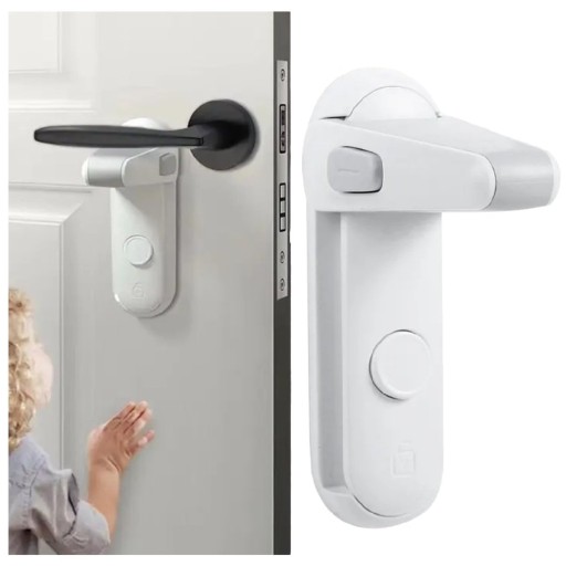 Zabezpieczenie klamki uniemożliwiające otwarcie drzwi lub okna przez małe dzieci. Posiada dużą podstawę która umożliwia solidny montaż zabezpieczenia za klamką z pomocą taśmy samoprzylepnej.