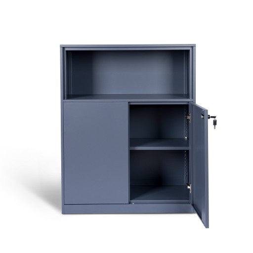Szafa metalowa MALAGA może być wykorzystywana w biurach, recepcjach, gabinetach lekarskich, szkołach. Ergonomiczne wymiary szafki pozwalają na stworzenie wydajnych i bezpiecznych obszarów pracy. Górna powierzchnia blatu może służyć jako przestrzeń dla drukarki lub innych przyborów biurowych. Część zamykana może pomieścić około 20 segregatorów. Część otwarta może służyć do przechowywania mniej wartościowych przedmiotów.
