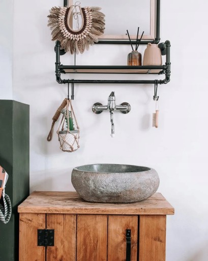 Umywalka z naturalnego kamienia rzecznego będzie stylowym uzupełnieniem każdej łazienki.