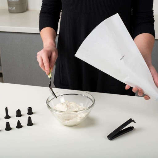 - WIELOKROTNEGO UŻYTKU - Rękaw do dekoracji i adaptery są wielokrotnego użytku. Nadaje się do mycia w zmywarce do naczyń.