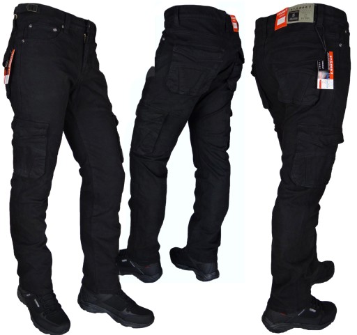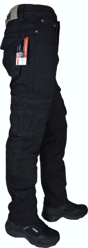 Spodnie Męskie Bojówki CZARNE Rozciągliwe (stretch) Pojemne Kieszenie Regulator w Pasie