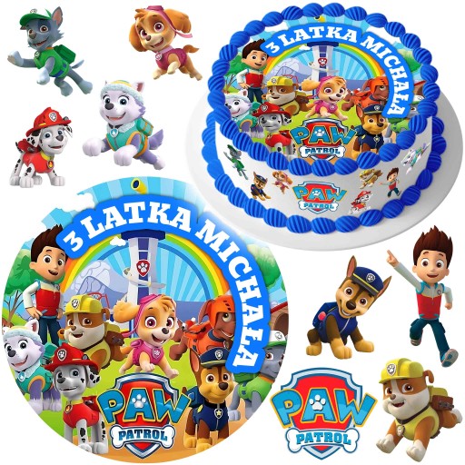 MEGA ZESTAW OPŁATEK NA TORT PSI PATROL PAW PATROL + 8szt POSTACI + TEKST