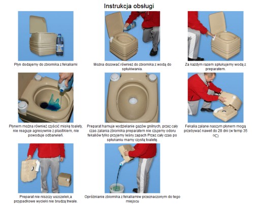 - Wspomaga rozkładanie papieru i fekaliów, nieczystości usuwane są w postaci płynnej.