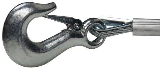 Hak z mocnej stali z blokadą zabezpieczającą przed nieprzewidzianym odpięciem mieści się w całości w otworze gwarantując bezpieczeństwo i łatwość transportu.