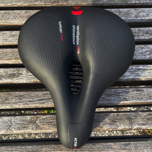 Niezwykle wygodne siodełko rowerowe. Doskonałe dla osób odczuwających dyskomfort na standardowych siodełkach w czasie dłuższej jazdy na rowerze. Wyposażone w specjalny, anatomiczny otwór poprawiający wentylację oraz podwójną amortyzację zwiększającą komfort jazdy. Zawieszone na 2 prętach co znacznie zwiększa jego stabilność. Dodatkowa, czerwona lampka LED w tylnej części siodełka umożliwia rezygnację z klasycznej lampki z tyłu roweru.
