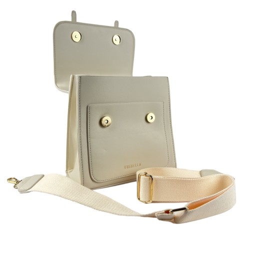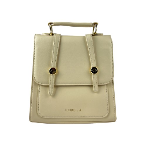 Przedstawiamy Państwu nową torbę z Unibella. Torebka jest w kolorze jasno beżowym i jest zapinana na dwa magnetyczne klipsy.
