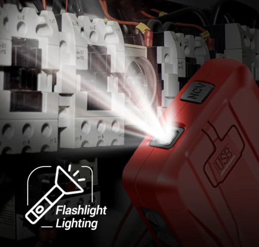 - NCV Bezkontaktowy indukcyjny: zacznie migać czerwonym światłem i włączy alarm po wykryciu pobliskiego napięcia prądu przemiennego.