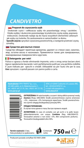 SRODEK DO MYCIA SZYB I LUSTER CANDIVETRO ATOM.750ML. SZT ATAS