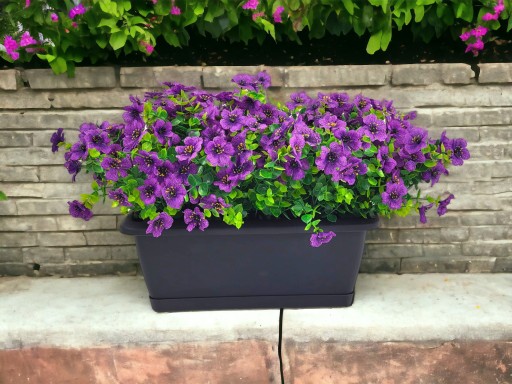 Sztuczne kompozycje z Petunii można umieścić w wazonie, w donicy, wiaderku lub w wiszącej doniczce na balkonie, tworząc wyjątkową dekorację.