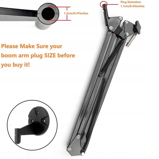 Uchwyt ścienny do ramienia wysięgnika zawieszanego: specjalny do ramienia wysięgnika zawieszanego, którego średnica śruby wynosi 1,1 cm / 0,43 cala; Średnica okrągłej płyty do montażu na ścianie: (4,4 cala) 11,3 cm