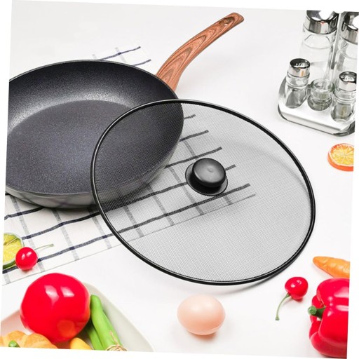 Pokrywka osłona przed pryskaniem tłuszczu czarna chroniąc przed rozpryskami tłuszczu pomaga zachować czystą kuchenkę. Siatka optymalizując obieg powietrza podczas smażenia pozwala przygotować idealne jajka sadzone lub tosty. Wykonanie z trwałego metalu i tworzywa sztucznego zapewnia jej długą żywotność.