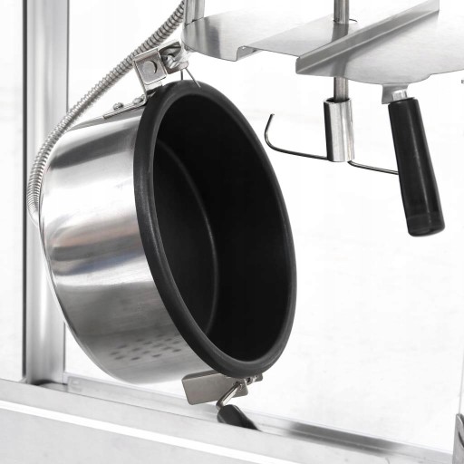 Przygotuj pyszny popcorn w kilka minut dzięki naszej maszynce do popcornu! Jest to prawdziwa atrakcja, zaprojektowana specjalnie na potrzeby profesjonalnego cateringu oraz domowe. Można ją łatwo obsłużyć za sprawą 3 przycisków, dzięki czemu zrobienie popcornu jest szybkie i proste. Maszynka ta ma moc 1400 W i może szybko osiągnąć odpowiednią temperaturę roboczą. Przezroczysta obudowa z wentylowanymi szybkami umożliwia obserwowanie strzelającego popcornu. Podświetlane wnętrze pozwala na kontrolowanie przygotowania każdej porcji, aby osiągnąć perfekcyjne wyniki. Maszynka zawiera pojemnik ze stali nierdzewnej z wbudowanym systemem mieszania. Powłoka teflonowa tego wyjmowanego pojemnika zapobiega przypiekaniu się popcornu do jego powierzchni. Urządzenie ma odchylane drzwiczki ułatwiające nabieranie i serwowanie popcornu. Dzięki lekkiej konstrukcji możesz z łatwością przestawić je z jednego miejsca w drugie.