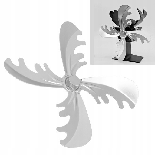 Wentylator kominkowy z 4 ostrzami. Łopatka wentylatora do domowego pieca na drewno ze stopu aluminium. Średnica 180 mm. Styl świątecznego jelenia