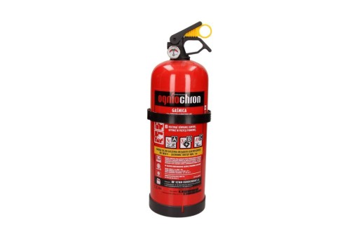 - Gaśnica proszkowa 2 kg ABC z głowicą plastikową, manometrem i wieszakiem
