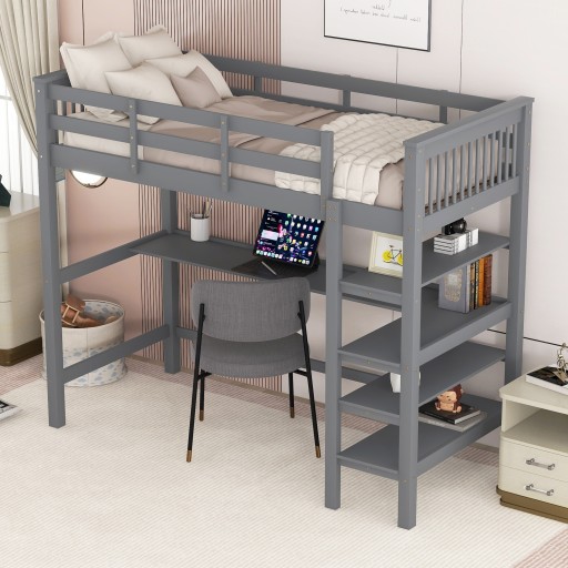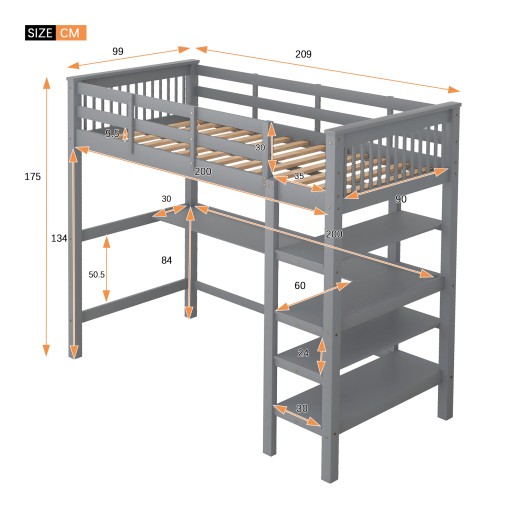 To tradycyjne pojedyncze łóżko na poddaszu wykonane jest z wysokiej jakości litej sosny i płyty MDF. Dzięki wbudowanemu biurku i solidnym półkom łóżko to zapewnia wygodne miejsce do spania, a pod nim znajduje się przestronne i przydatne miejsce do pracy. Półki mogą pełnić również funkcję drabinki i zapewniać łatwy dostęp do łóżka. To łóżko na antresoli jest wyposażone w listwy wsporcze i solidne poręcze, które zapewniają wygodę i bezpieczeństwo. Zdecydowanie świetny dodatek do Twojego pokoju.
