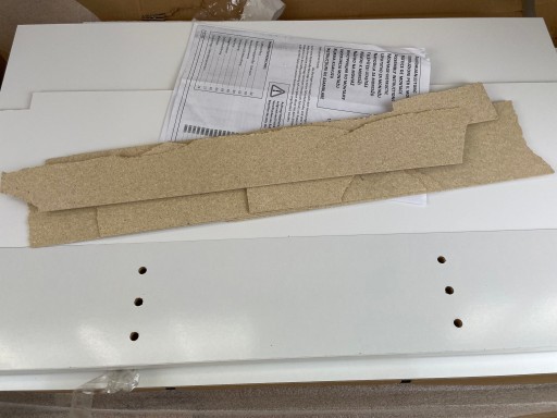 Uszkodzone wypełnienie pleców szafki.
