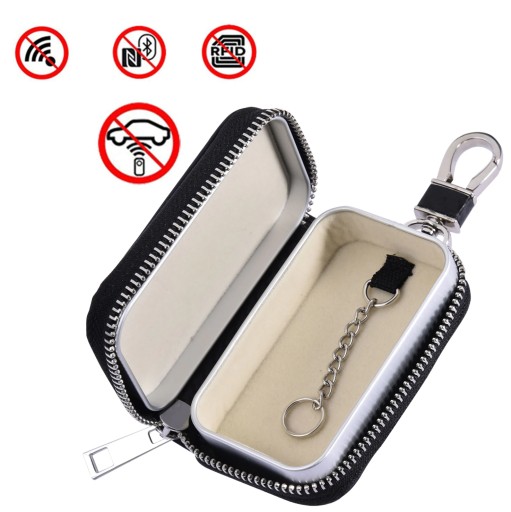 - Osłona na brelok od kluczy jest wykonana z najwyższej jakości skóry PU i dwóch warstw materiałów ekranujących, które mogą zapewnić kompletny bloker sygnału.