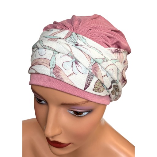 Turban damski wiosenny Lena róż-419 chusta miękka także po chemioterapii