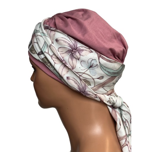 Turban Lena to gotowa do założenia czapka z doszytą szarfą z tyłu czapki , którą można użyć do różnych kompozycji .