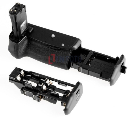 Grip umożliwia lepsze trzymanie aparatu, poprawia komfort obsługi podczas robienia zdjęć w układzie pionowym oraz pozwala zwiększyć liczbę zdjęć możliwych do zrobienia jednym kompletem baterii. Wyposażony jest w miejsce na włożenie klapki baterii oraz dodatkowy zaczep dla paska.