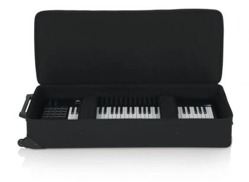 Lekki futerał na instrumenty klawiszowe Gator GK-61 jest doskonałym kompromisem pomiędzy pokrowcem z gąbki a twardym casem z drewna lub tworzywa sztucznego. Mimo niskiej wagi futerały linii Gator GK gwarantują doskonałą ochronę instrumentu. Za stabilizację klawiatury w pokrowcu odpowiadają dwa regulowane, miękkie pasy. Dla wygodniejszej manipulacji futerał został wyposażony w kółka oraz wyciąganą teleskopową rączkę.