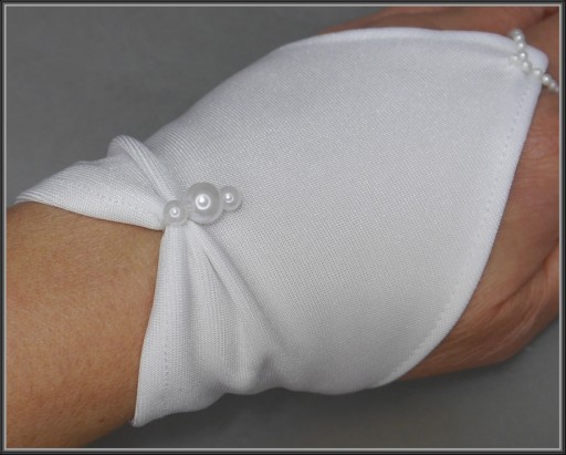 Komplet komunijny: okapnik z taśmy satynowej premium i tiulu, rękawiczki zakładane na jeden paluszek i torebka trzywarstwowa z satyny pierwszego gatunku, tiulu i podszewki z ręcznie przyszytymi perełkami w dwóch rozmiarach. Torebka posiada wkładkę pomagającą w zachowaniu kształtu woreczka nawet po jego obciążeniu. Na pozostałych aukcjach można kupić każdy produkt osobno lub w innym zestawieniu.