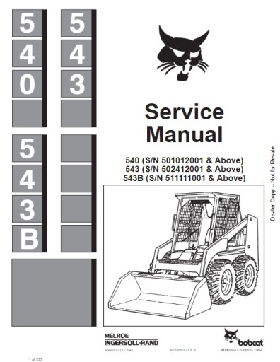 BobCat Service Manual - 540 (S/N 501012001 & Above)543 (S/N 502412001 & Above)543B (S/N 511111001 & Above) - part no. 6566532 (11–94) (iloscz srton 322)