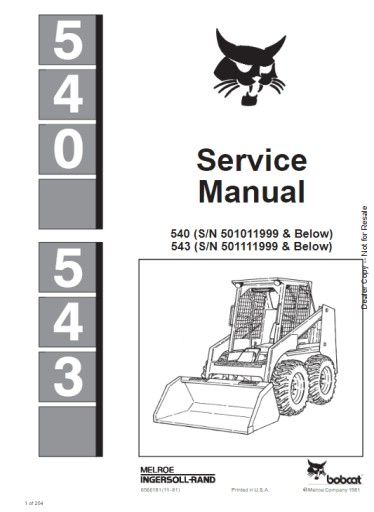 BobCat Service Manual - 540 (S/N 501011999 & Below) 543 (S/N 501111999 & Below) - part no.6566181 (11–81) (iloscz srton 254)