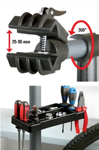 Zacisk można obracać o 360°, prace przy rowerze nigdy nie były tak łatwe