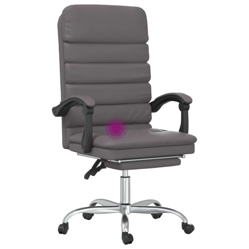 Rozkładane, masujące krzesło biurowe, szare, sztuczna skóra