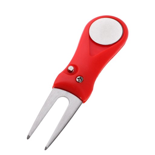 Pitch Repair Divot Switchblade Tool Golf Ball Marker Groove Cleaner Red