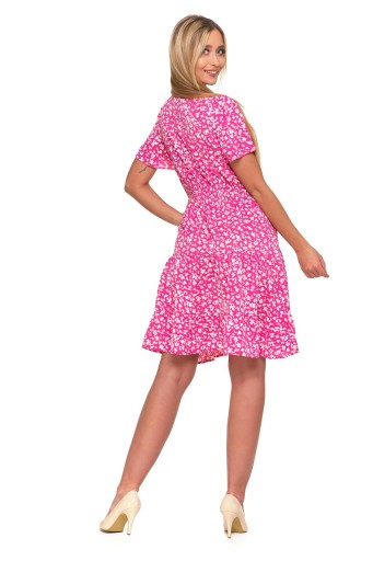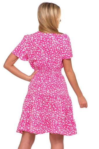 Oto sukienka, która jest kwintesencją letniej elegancji i kobiecości - rozkloszowana, z krótkimi rękawami w stylu motylkowym, jest synonimem zwiewności i subtelnej gracji. Ten model sukienki to idealne połączenie wygody i stylowego designu, które sprawdzi się zarówno podczas casualowych spotkań, jak i na bardziej formalne okazje.